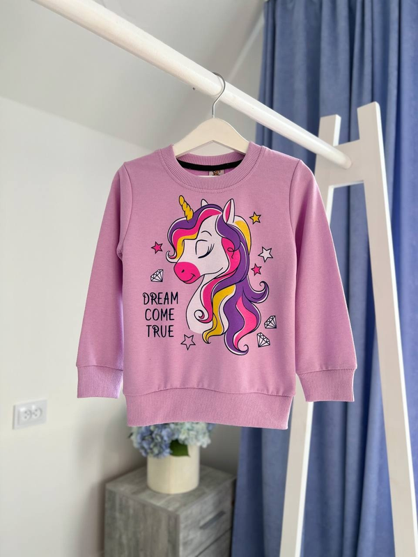 Свитшот для девочки -Ткань: Двух.нитка без утепления 95%хлопок 5%эластан -Производство Турция -Цвет ФИОЛЕТОВОЙ Размеры: 3 года рукав 36 см, пог 31 см, длина 41см (5 шт) 4 года рукав 37 см, пог 33 см, длина 44см(7 шт) 4-5 лет рукав 40 см, пог 34 см, длина 45см(8 шт) 5-6 лет рукав 42 см, пог 36 см, длина 46 см(3 шт)