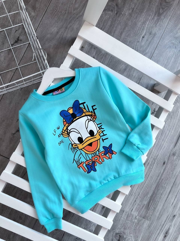СВІТШОТ ДЛЯ ДІВЧИНКИ -Тканина: двух.нитка з начосом -Виробництво Туреччина -Колір: БІРЮЗОВИЙ Розміри: 2-3 роки рук 35 см пог 29 см довжина 38 см (5 шт) 4-5 років рук 38 см пог 30 см довжина 41 см (5 шт) 5-6 років рук 41 см пог 32 см довжина 45 см (2 шт) 7-8 років рук 45 см пог 34 см довжина 50 см (1 шт)