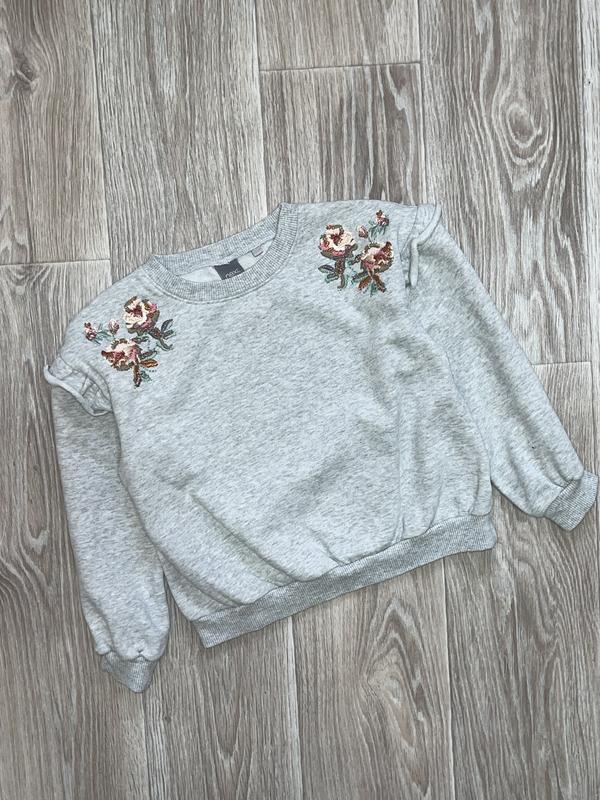 Свитшот с вышивкой Утеплённый баечкой Состояние идеальное 🏷️Next 7 лет/122 Длина 41. ПОГ 42. Рукав от шеи 48