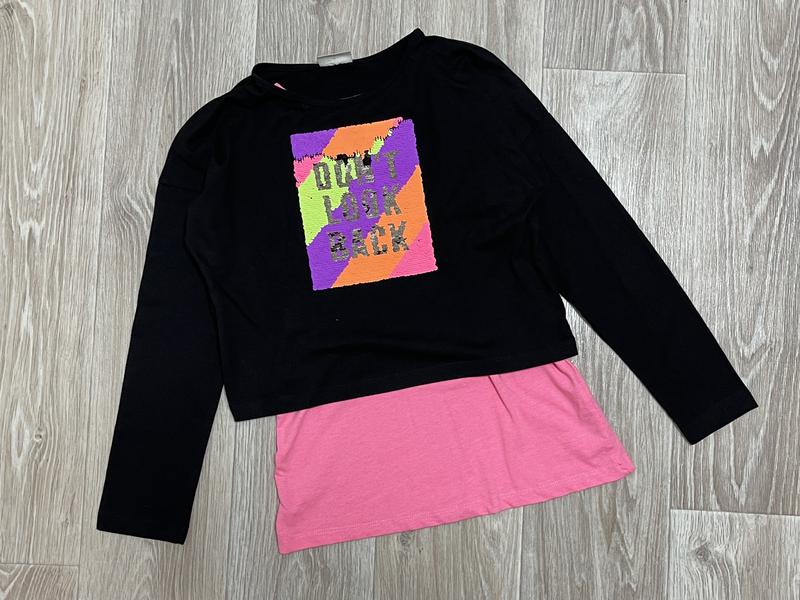 Лонгслив с майкой 2в1 Пайетки интерактивные Состояние новой вещи без бирки 🏷️LC Waikiki 10-11 лет/140-146 Длина 41/55. ПОГ 43/37. Рукав от шеи 60