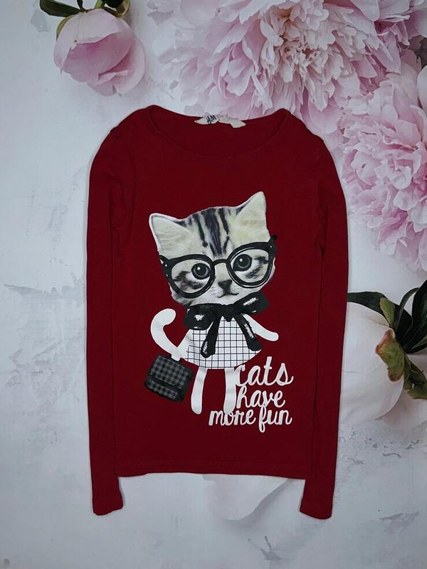 лонгслив с котом Н&M 2-4 года/98-104 (2) длина 39. ПОГ 28. рукав 36