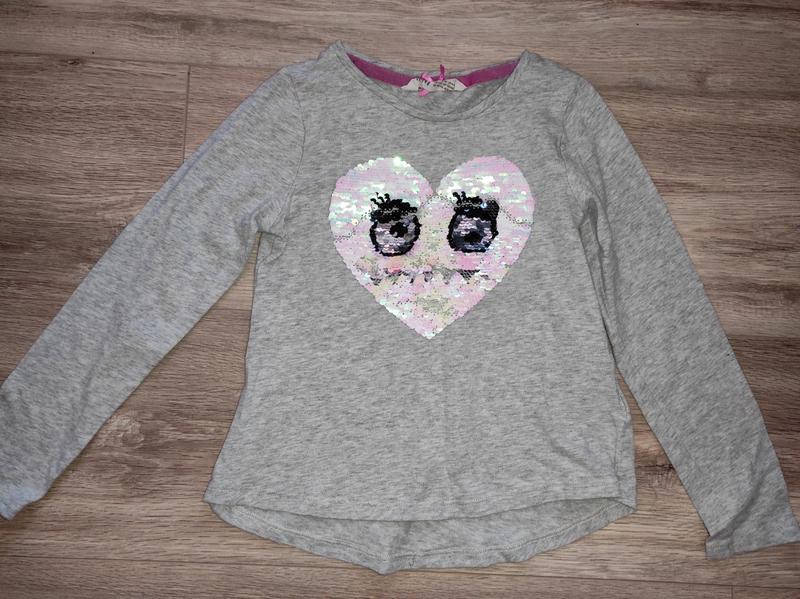Реглан с принтом из переворотных пайеток,на 4-6 лет, отличное состояние