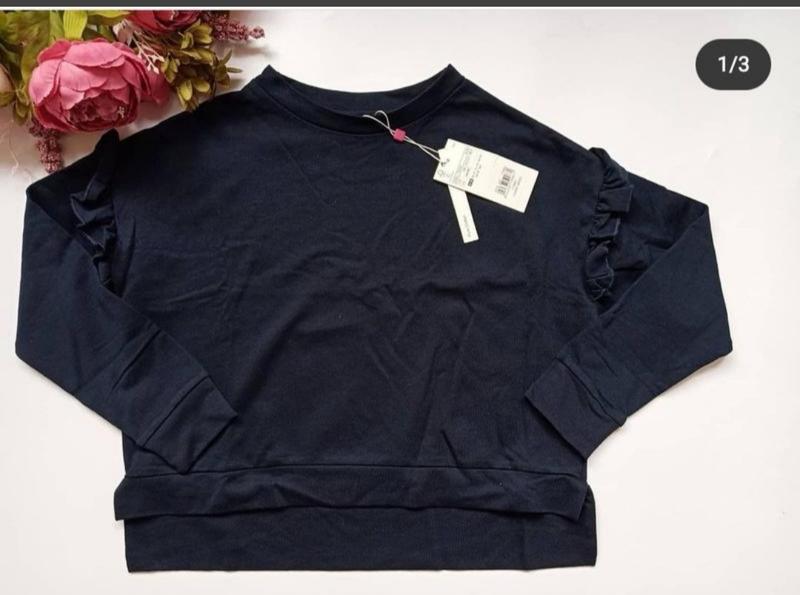 🍭Красивая кофточка украшена на плечах воланами Рукав 3/4 Цвет насыщенный темно - синий Бренд OVS, Италия 🏷️ 140 см, 9-10 лет 💸 260 грн Ткань плотная, немного тянется 100% хлопок 📌Замеры: - длина общая от плеча спереди 42 см,сзади 39 см, длина рукава 40 см
