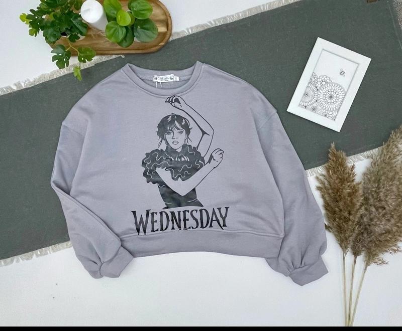 СУПЕР НОВИНКА ☔️світшот " Wednesday", Ткань-двунитка турецкая пенье с обратной стороны петля СУПЕР КАЧЕСТВО размер/☔️длина/пог/рукав от горловины похибка+-2см 158/☔️53/56/67-1шт
