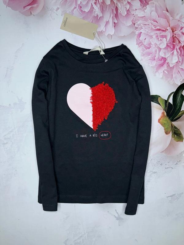 Лонгслив с сердцем Новый 🏷Mango 7 лет Длина 43. ПОГ 35. Рукав 41
