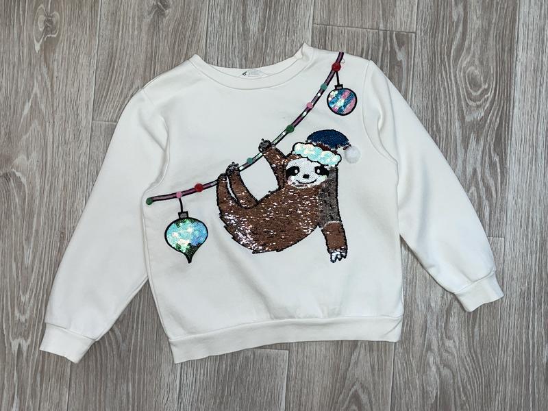 Світшот із лінивцем Усередині на баєчці Паєтки інтерактивні Стан ідеальний 💰H&M 6-8 лет/122-128 Довжина 47. ПОГ 41. Рукав 43-54