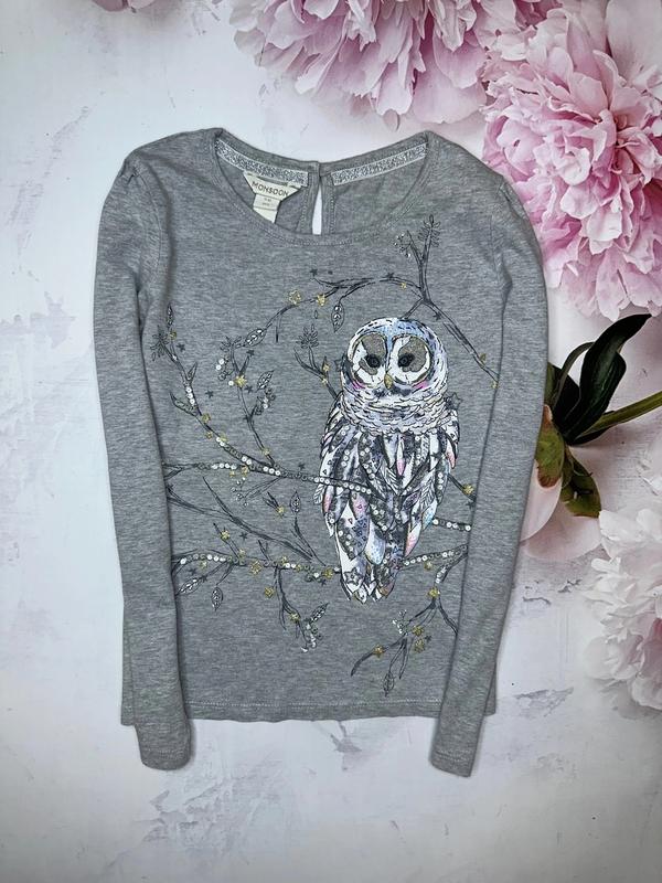 Лонгслив с совой Состояние идеальное 🏷️Monsoon 9-10 лет Длина 46. ПОГ 38. Рукав 49