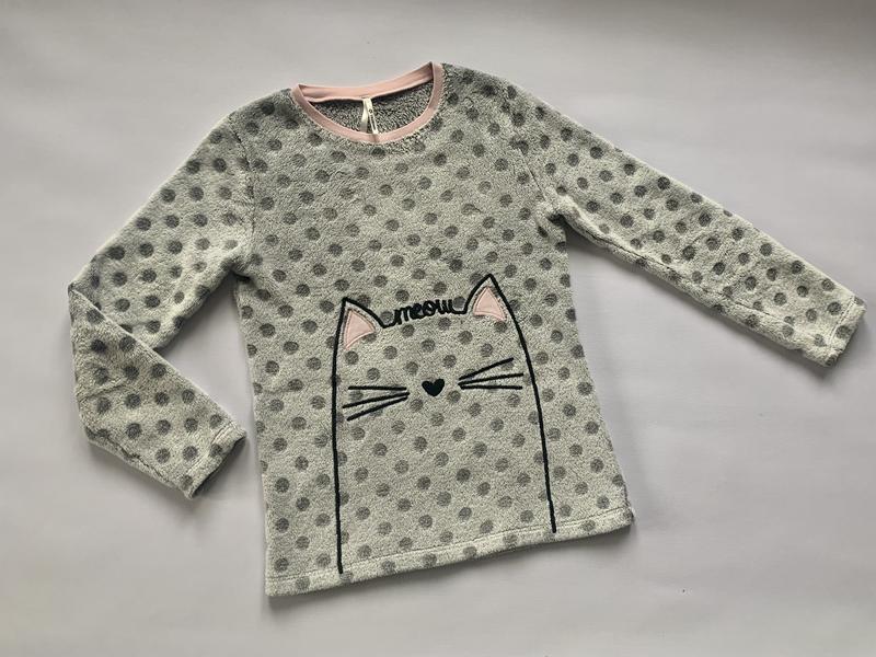 Пижамная кофточка на девочку, серая в горошек с котиком Бв в отличном состоянии, без нюансов Около 6-8 лет, ориентируйтесь по замерам Длина 55см Длина рукава 50см Ширина в плечах 32см Ширина от подмышки до подмышки 40см
