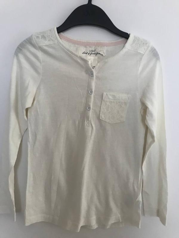 Реглан H&M молочного цвета р. 122/128, коттон, очень красивый, декорированный кружевом