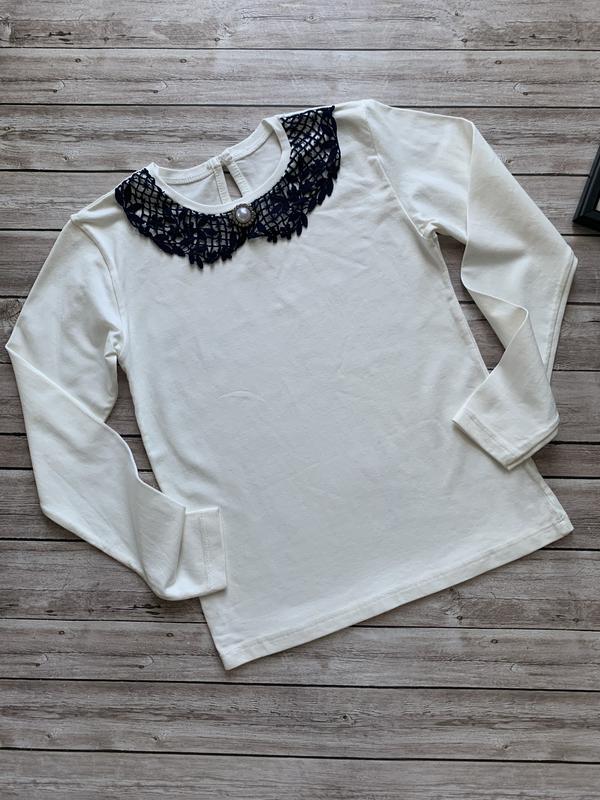 Реглан в молочному кольорі з синім ажурним комірцем в розм 134-140 Виробник Туреччина