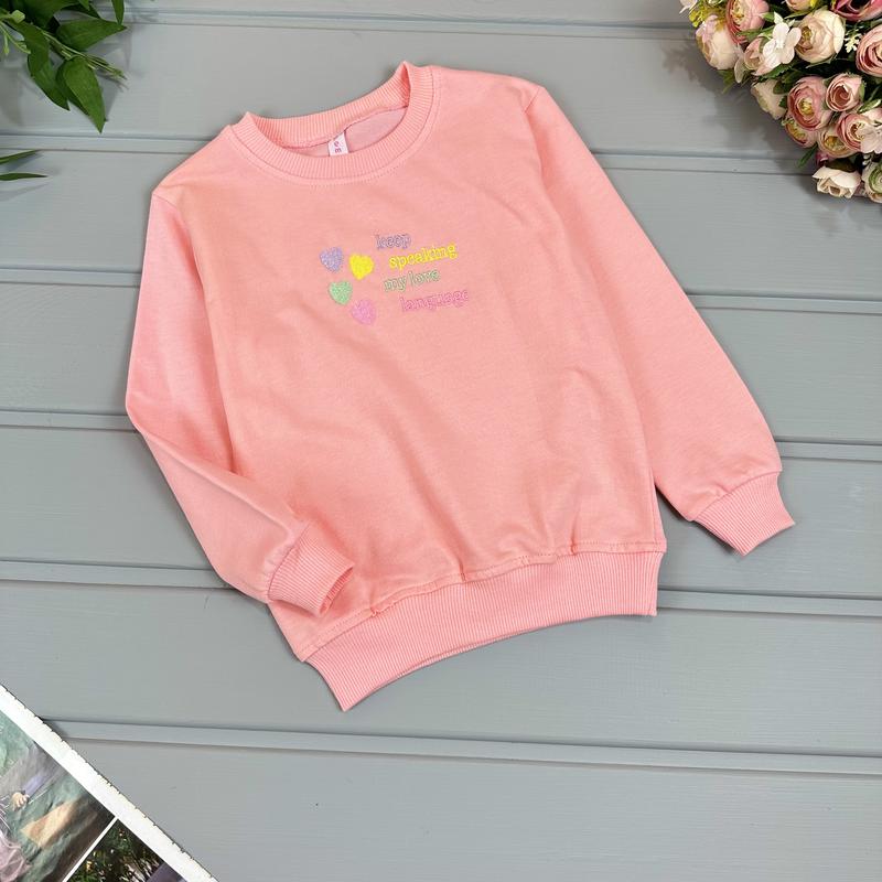 🦋Свитшот Сердечки розовый. Тканина двунитка , малюнок - накат. Очень хорошее качество Производитель Турция 📐Замеры: 98 - длин 40/ полуобхв. 31/рук. 35 104 - длин 41/ полуобхв. 32/рук. 36 110 - длиж 44/ полуобхв. 32/рук. 39 116 - длин 46/ полуобхв. 33/рук. 41 122- - длин 48/ полуобхв. 34/рук. 42