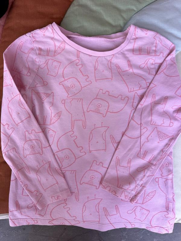 Розовый реглан со зверушками Размер:104-110 см, длж: 40,шир::31-32, рук от горла: 40 Состояние: очень хорошее, есть маленькое пятно Цена: 50 грн