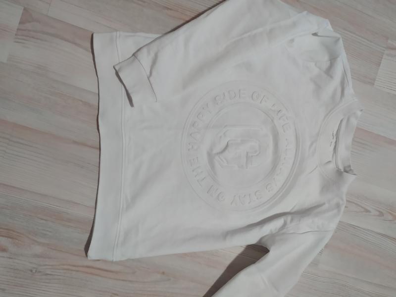 Свитшот белого цвета, принт объемный, выбитый. Стан идеален, носили редко. Без нюансов, ткань хлопок.