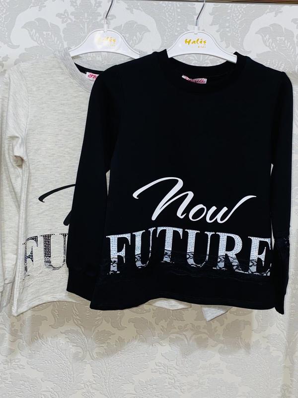 Крутой свитшот, двунитка отделка кружочками. Качество супер, производство Турция. В наличии Размер подбираем по вашим замерам. Черный 128-140-152-164 Серый 128-152