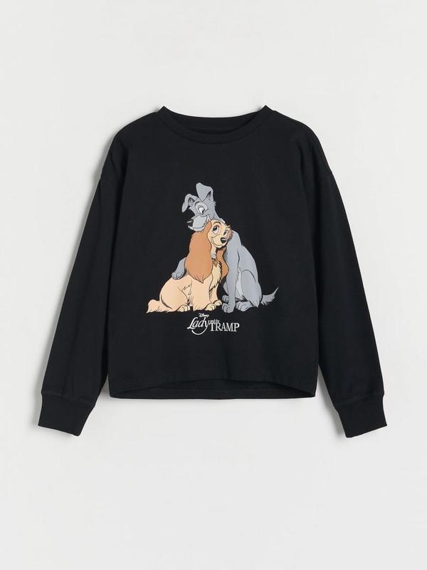 Розміри в наявності :128,146. Футболка вільного крою, виготовлена з бавовни. кругла горловина опущена лінія плечей довгі рукави з манжетами в рубчик Принт з мотивом Закоханий пес ©Disney