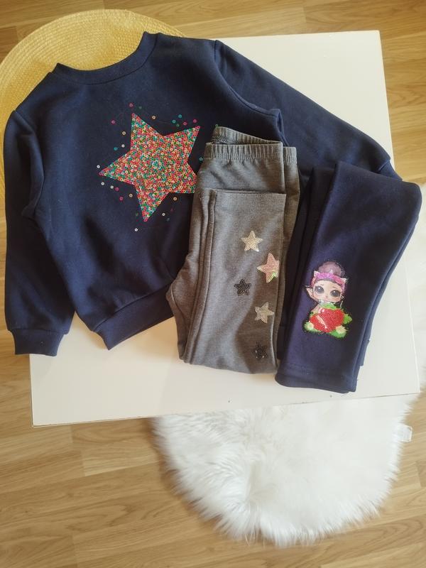 Теплый набор на девочку 104см. серые не утепленные, но на осень подойдут! синие утепленные.стан отличный! свитшот утеплен флисом!H&M. кофта довж-39,гр-38,5, рукав горл-37см 44,5см._ 👛200грн. серые лосины длин-59, пояс -25,5см 👛100грн. синие лосины длин-59, пояс 23,5см 👛130 грн.