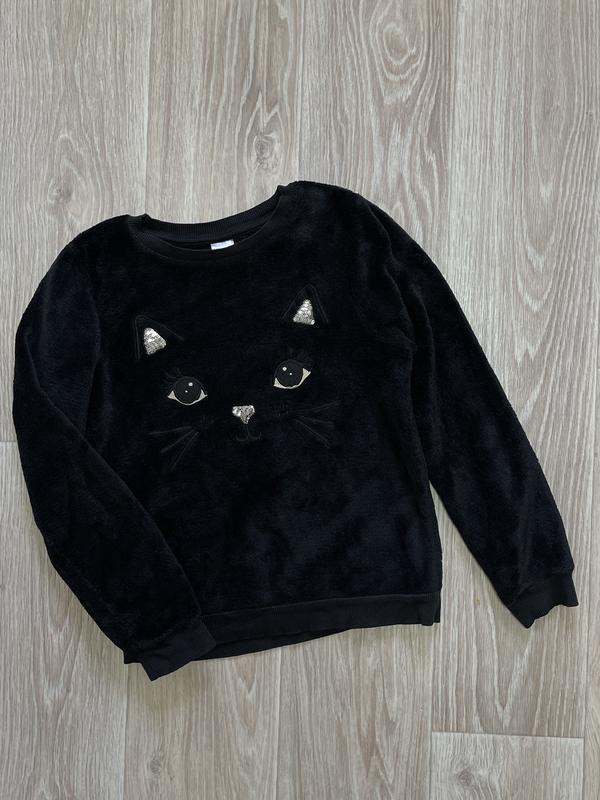 Плюшевый свитшот Black Cat Мягкий и приятный к телу Рисунок вышит и украшен пайетками 🏷️Palomino 10 лет/140 Длина 49. Пог 41. Рукав 51