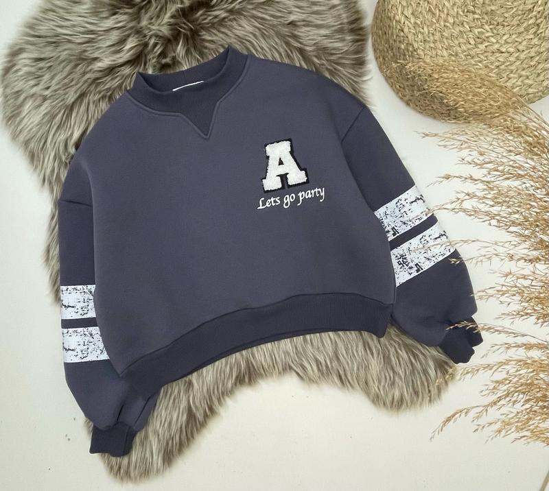 Таня Арт 3697 Свитшот с махровой буквой и трендовым накатом Горловина и манжеты измельченная Ткань трехнитка пенье на флисе Не кашлатиться Хорошее качество! рост/длина/пог/рукав от горловины похибка +-2см 140-146/44/52/60-1шт 146-152/45/53/61-1шт 152-158/49/55/65-1шт 158-164/53/56/67-1шт 164-170/57/59/72-1шт