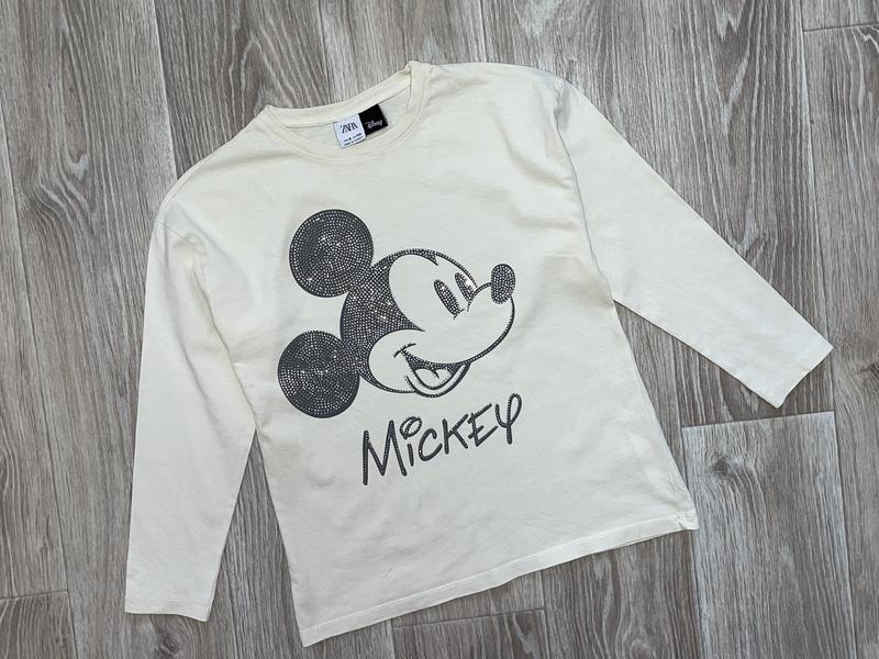 Лонгслив Микки Рисунок украшен стразами Состояние супер 🏷️Zara 8 лет/128 Длина 55. ПОГ 42. Рукав от шеи 56