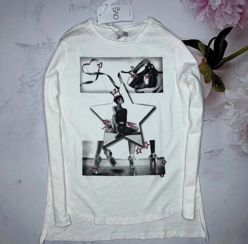 Лонгслів реглан «Балет» Колір білий Новий 🏷OVS 9-10 років Довжина 52/56. ПОГ 40. Рукав 48