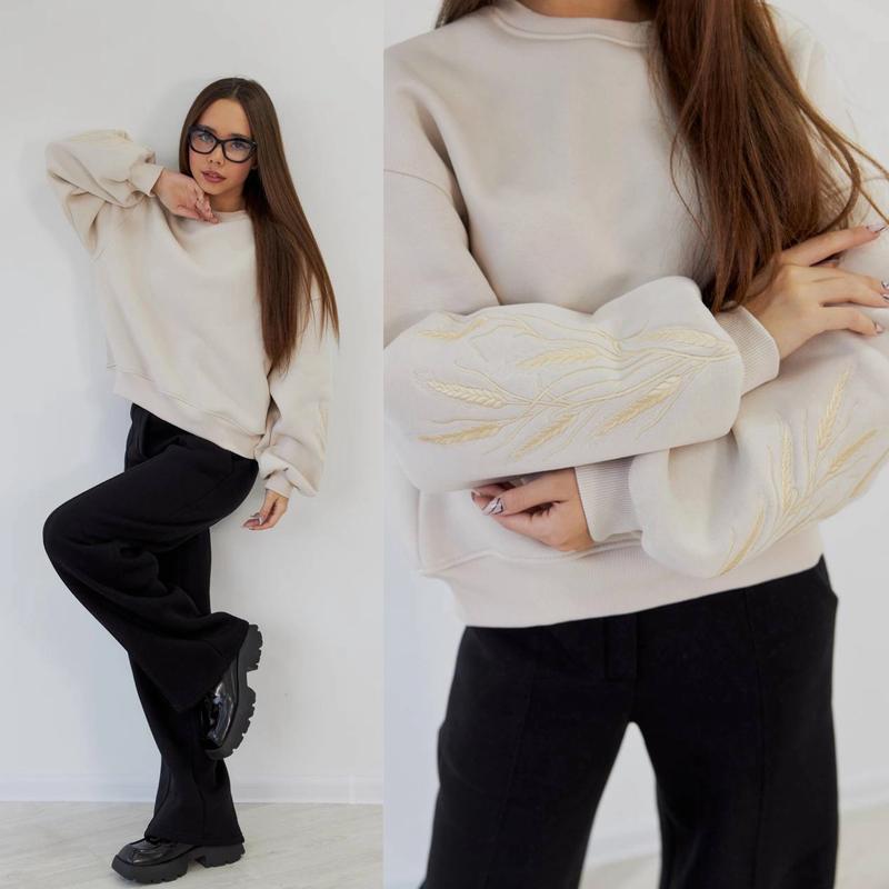 Таня арт 3667 Хітовий світшот зі справжньою вишивкою Тканина тринитка пеньє на флісі манжети рібана СУПЕР ЯКІСТЬ! зріст/довжина/пог/рукав від горловини похибка +-2см 140-146/44/52/60-2шт 146-152/45/53/61-2шт 152-158/49/55/65-1шт 158-164/53/56/67-1шт 164-170/57/59/72-1шт