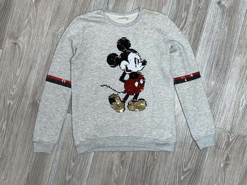 Свитшот с Микки маус Внутри на баечке Пайетки интерактивные Состояние отличное 🏷️Disney 170-176 р Длина 63/65. ПОГ 48. Рукав 64