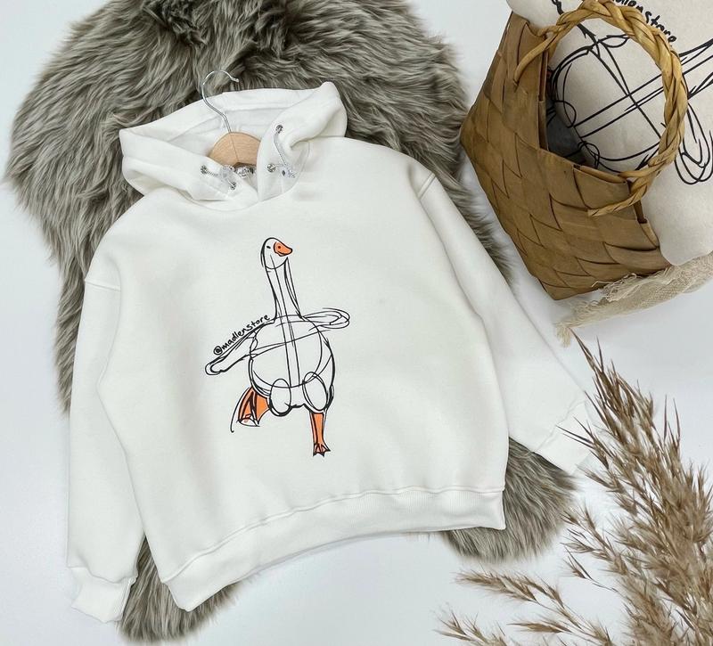 Арт 3826 Худи с капюшоном и трендовым качественным прорезиненным накатом ГУСЬ-ОБІЙМУСЬ В капюшоне есть утяжка Ткань-трехнитка пенье на флисе Рост/длина/пог/рукав от горловины похибка+-2см 140-146/52/53/57-1шт