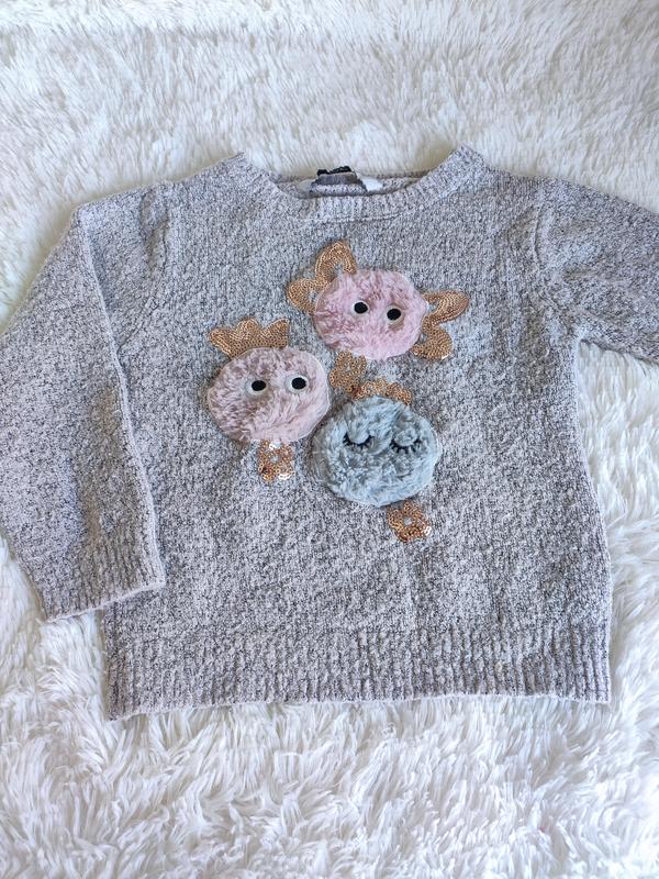 мягкая кофта с милой, пушистой, аппликацией. размер указан на 2-3 года. ширина 31 длина 37 рукав 33