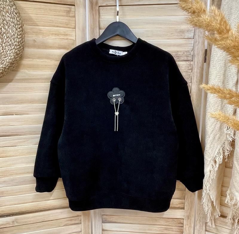 Таня арт 3935 Хороший свитшот Ткань микро-вельвет очень хорошего качества на флисе плотный, очень теплый и приятный к телу цвет черный СУПЕР КАЧЕСТВО! рост/длина/пог/рукав от горловины похибка +-2см 140/58/48/56-2шт 146/59/50/57-2шт 152/60/53/59-2шт 158/62/54/63-2шт 164/64/57/68-2шт