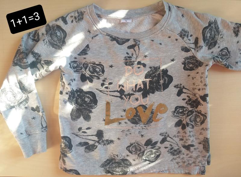 ✅1+1=3 при покупці двох речей - третя в подарунок (*третя річ меншої вартості) 🎀 є нюанси, на надписі, на двох буквах "тріснула" фарба; на розрізі збоку кофти, є маленькі дірочка по шовчику; на рукаві внизу є 2 маленькі темно-сині плямки (не критично) - все видно на останніх фото світшот з утеплювачем на зріст 128 см пог 40 см рукав спущений, замір рукава від горловини 47 см довжина речі 40 см