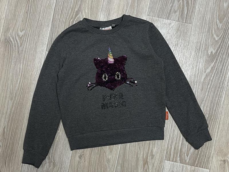 Свитшот на баечке. Мордочка из пайеток. Состояние отличное, без дефектов. 🏷Emoji 🔹9-10 лет Длина 45. ПОГ 42. Рукав 47.