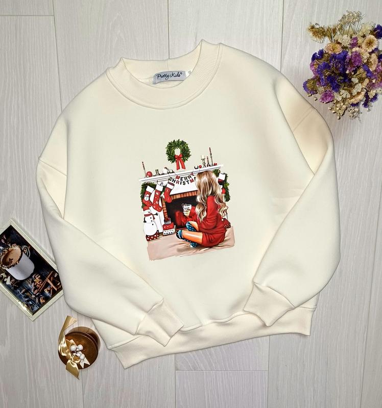 НОВИНКА! Стильний та теплий світшот з новорічним принтом. Тринитка на флісі, піньє. Якість супер! Рекомендую! довжина кофти/рукав від горловини /по 146 - 54/60/53 152 - 55/63/57 158 - 58/66/59 164 - 60/70/62 арт candy