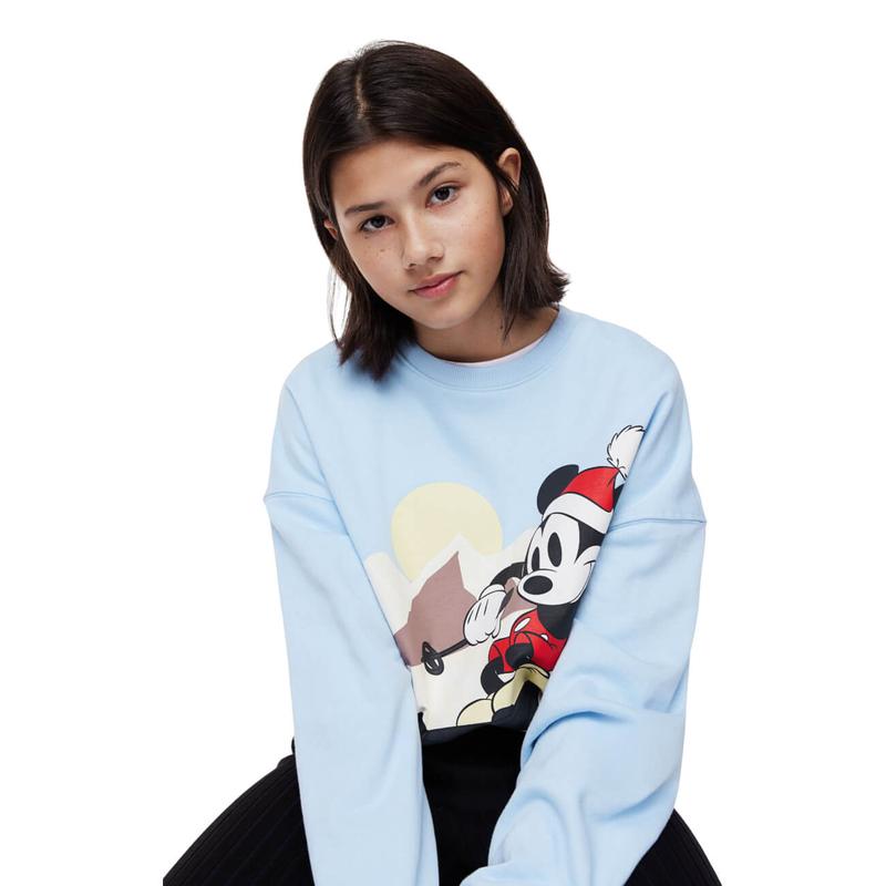 Топ оверсайз з легкого футера зі змішаної бавовни. Принт із мотивом Міккі Мауса спереду. Круглий виріз горловини, сильно приспущені плечі та трикотажна резинка по вирізу горловини, манжетам та нижньому краю. Колір: Світло-блакитний з принтом Довжина: Коротке Прання при 40 градусах Матеріал: французька махра Склад Бавовна 60%, Поліестер 40% Спущені плечі Розмір на етикетці 8 - 10 років 134/ 140 ЗАМІРИ: Рукав 45 см Плечі орієнтовно 58 см Висота світшоту 43 см Стан нової речі.