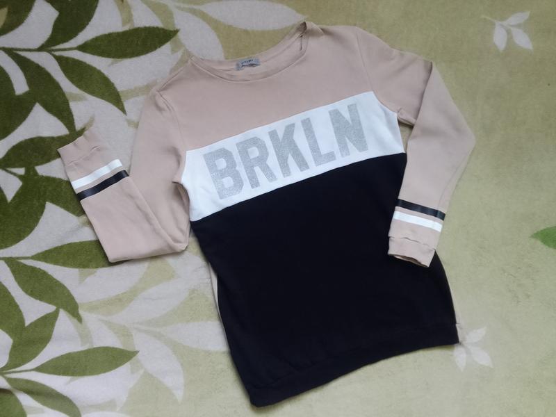 Удлиненный свитшот, туника Goldi на девочку, в красивом состоянии, без пятен и повреждений. Буквы нанесены серебристым напылением. Свитшот утепленный байкой. Производитель - Украина. Замеры: длина - 66 см; ширина в плечах - 39 см; ПОГ- 45 см; длина рукава- 56 см.