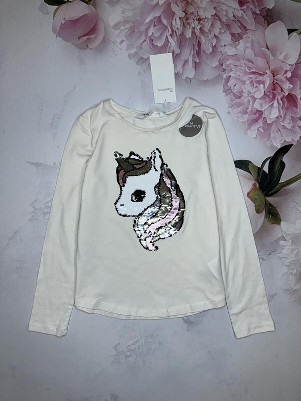 НОВЫЙ лонгслив с единорогом перевертыш. H&M 6-8 лет (4) длина 45. ПОГ 33. рукав 46