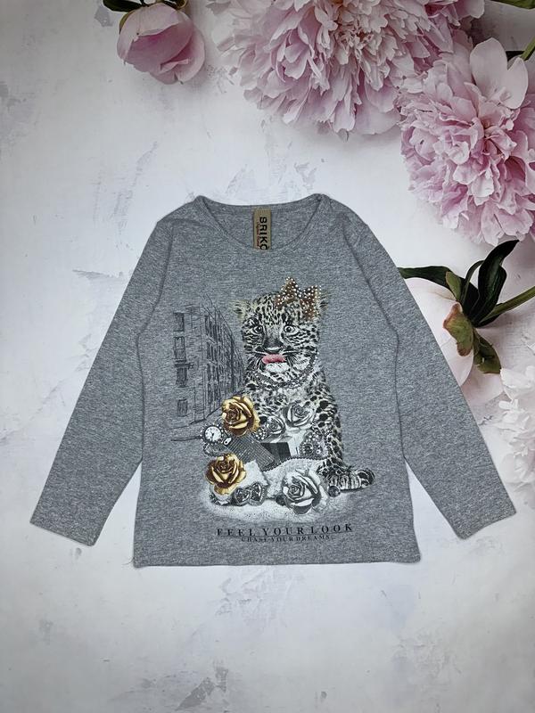 Лонгслив украшенный стразами Приблизительно 4-5 лет Длина 46. ПОГ 33. Рукав 40.