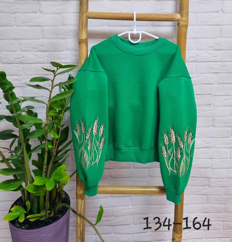 Хит сезона свитшот с вышивкой Ткань трехнитка пенье на флисе НЕ КОШЛАТИТЬСЯ ОТМЕННАЯ КАЧЕСТВО! 134(2 шт)-длина 45,пог 44,рукав от горловины 60,от плечевого шва 43 140(1 шт)-длина 47,пог 45,рукав от горловины 60, от плечевого шва 44 146 (нет)-длина 50,пог 48,рукав от горловины 62, от плечевого шва 48 152(2 шт)-длина 53,пог 50,рукав от горловины 65, от плечевого шва 50 158(2 шт)-длина 55,пог 51,рукав от горловины 67, от плечевого шва 51 164(3 шт)-длина 56,пог 52,рукав от горловины 72, от плечевого шва 52 +-2 см