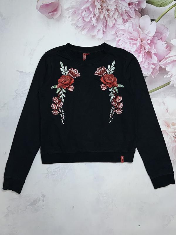 Свитшот с вышивкой Без бирки. Смотрите замеры Длина 48. ПОГ 43. Рукав 57