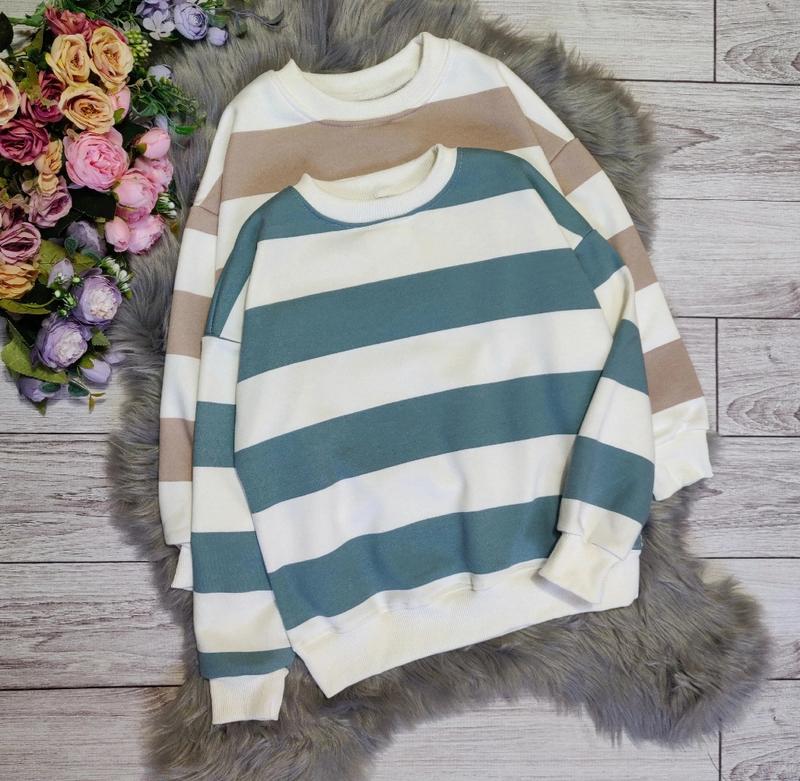 свитшоты в полоску🔥 Ткань: Петля пене+ребряная замеры -длина пог рукав от горловины 140-53/47/59 152-57/50/63