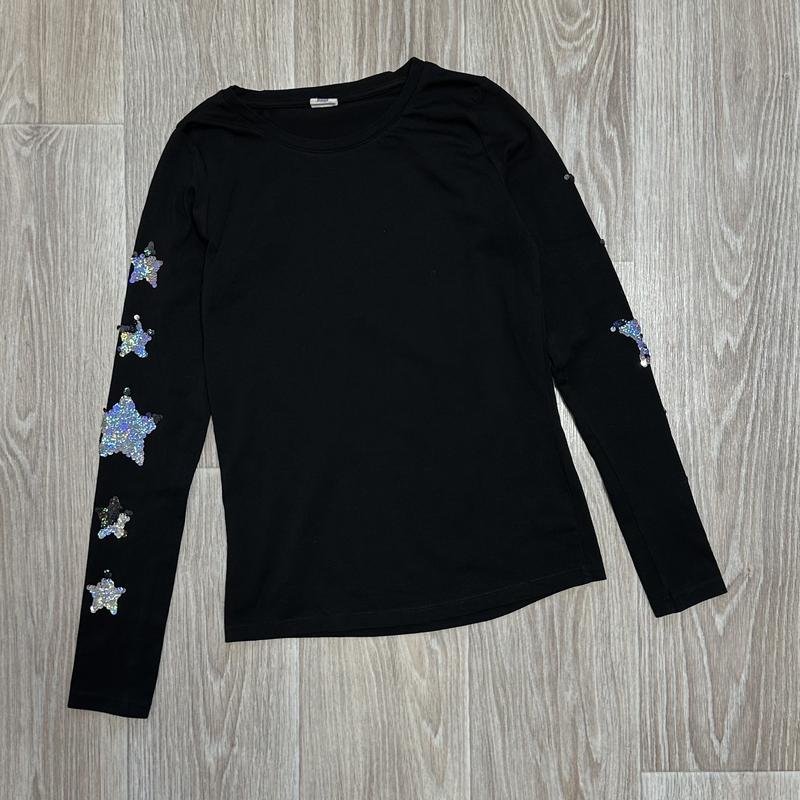 Черный лонгслив с пайетками в форме звезд — шикарный выбор для тех, кто ценит элегантность с прикосновением блеска. Этот стильный наряд добавит уверенности и привлекательности. Дайте образу яркий акцент с этим лонгсливом, подчеркнутым блеском и стильным дизайном. HEMA Длина 55. ПОГ 37. Рукав 56