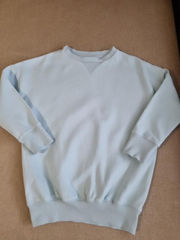 Свитшот утепленный. С середины есть легкий пушок. Замеры длина общая от плеча спереди 60, плечи спущенные 56, рукав 36/32, пог 50 Тканина 80%котон, 20% поліестер