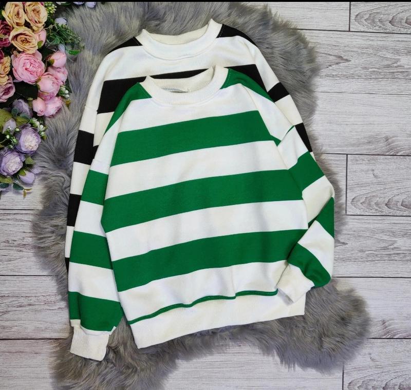 свитшоты в полоску🔥 Ткань: Петля пене+ребряная замеры -длина пог рукав от горловины 140-53/47/59 146-56/48/60 152-57/50/63 158-59/52/66