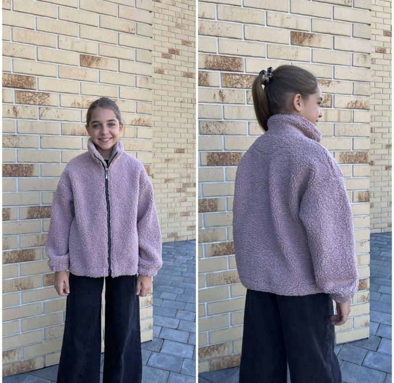 Бомбер-шубка Тканина хутро-барашек ТЕДДІ Застегивается на молнию. Низ шубки стягивается. Замеры: 128 длина - 45см, полуобхват груди - 45см, рукав от горловины - 58см. 134 длина - 50см, полуобхват груди - 47см, рукав от горловины - 59см. 140 длина - 52см, полуобхват груди - 49см, рукав от горловины - 62см. 146 длина - 53см, полуобхват груди - 50см, рукав от горловины - 64см. Мс