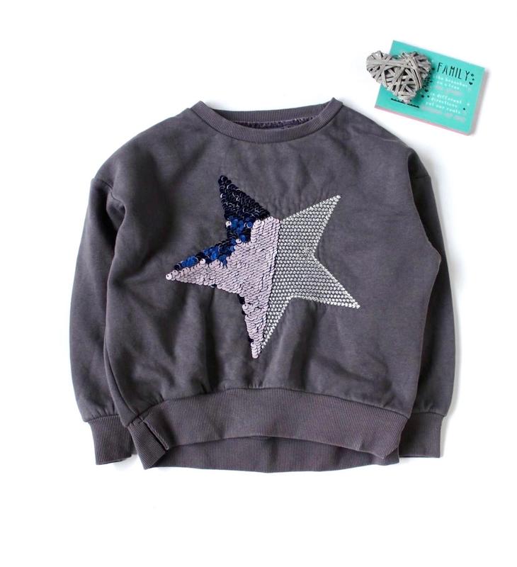 ❤️ Кофта, свитшот Next 5 лет ✅ С начесом ➕ Пайетки-перевертушки ✅ Состояние отлично 💵 186 грн 🖊длина -40/43, ширина под подмышками - 41.5, рукав + плечо - 46