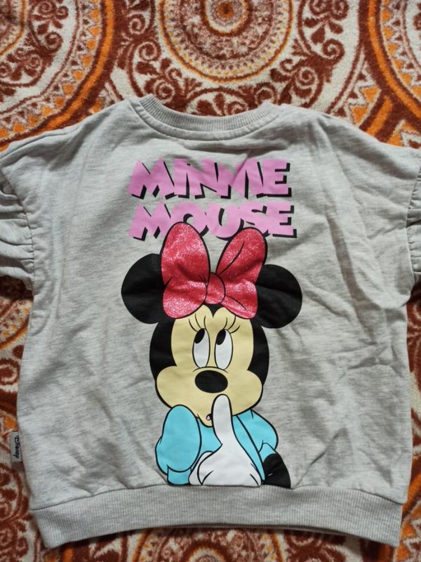 Стан - идеальный (всего на правом рукаве есть малозаметное пятно). Длина - 43 см. Ширина - 41,5 см. Рукав - 46 см (идет фонариком). Рисунок Minni на спинке.