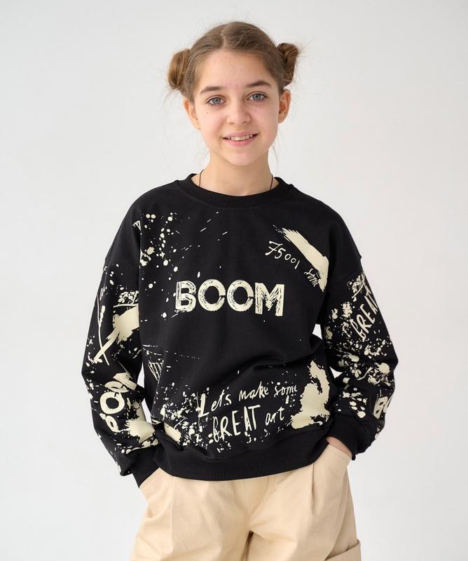 Стильный и модный свитшот ткань турецкая двухнитка, качество пенье на хлопковой основе,ное кошлатится манжеты и пояс на резинке рекомендую!!! цвет черный замеры: длина/рукав от горловины/пог 128-48/53/45 134-49/55/47 140-52/57/48 М