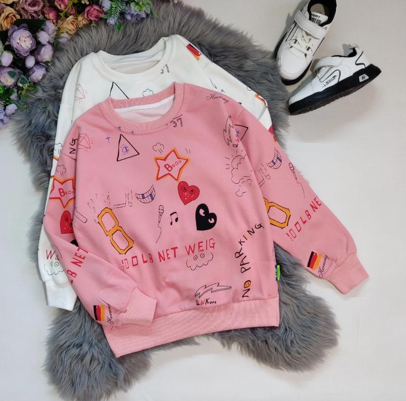 Весенний свитшот с ярким и качественным принтом производитель Китай качество очень хорошее тканина двунитка в мілкий рубчик замеры-длина-пог\рукав от горловины 130-57/46/65 140-58/50/67 150-62/50/70 160-66/52/72 170-69/54/75