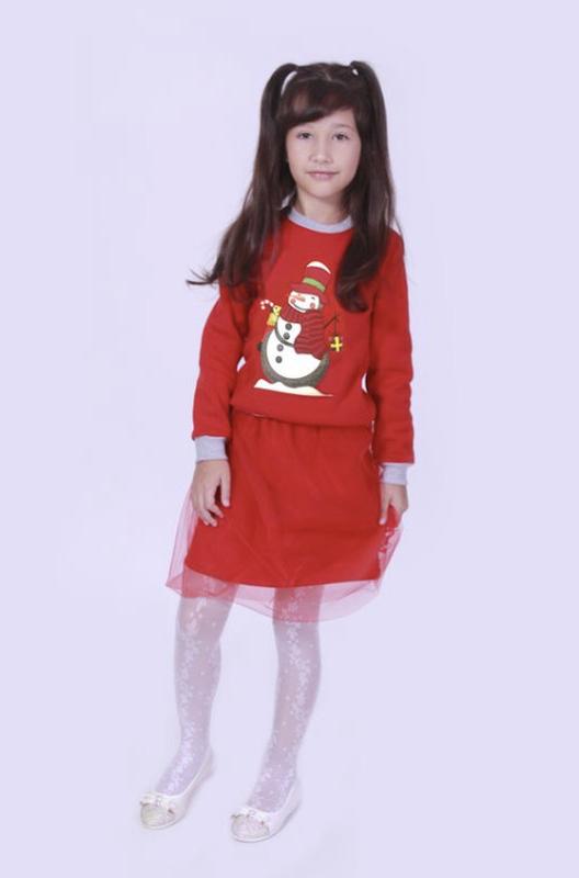 Світшот яскравий, з утепленням. Барвиста аплікація у вигляді сніговика, контрастні сірі манжети і горловина. На зріст 122 см, вік - 7-8р. Матеріал: 90 % бавовна, 10 % поліестер. Довжина-43 см Ширина під рукавами-32 см Плечі-27 см Рукав-43,5 см