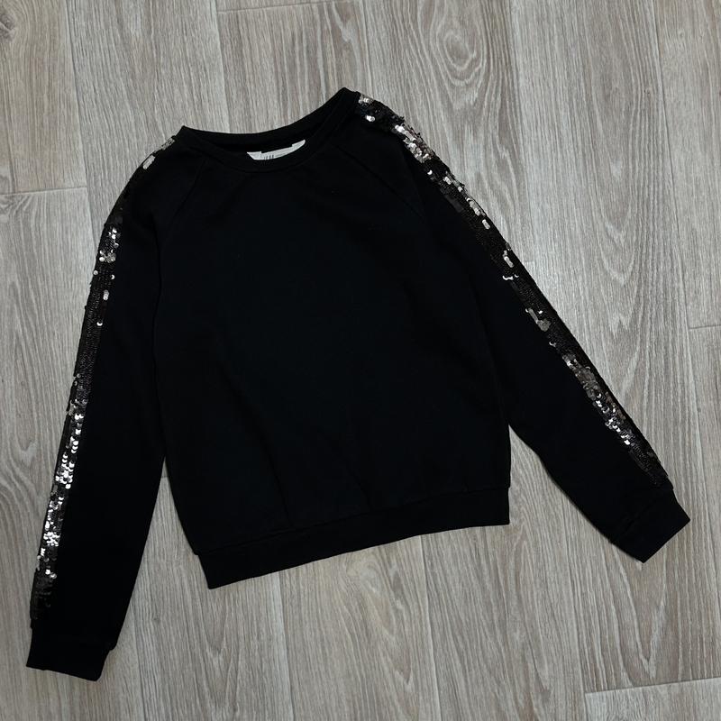 Свитшот на баечке. Рукава украшены пайетками. Состояние супер 🏷️H&M 10-12 лет/146-152 Длина 53. ПОГ 41. Рукав от шеи 64