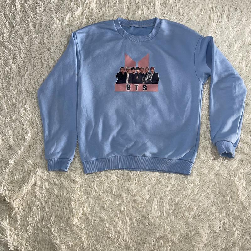 Подростковый свитшот мегапопулярной группы BTS, голубого цвета для девочки. В идеальном состоянии